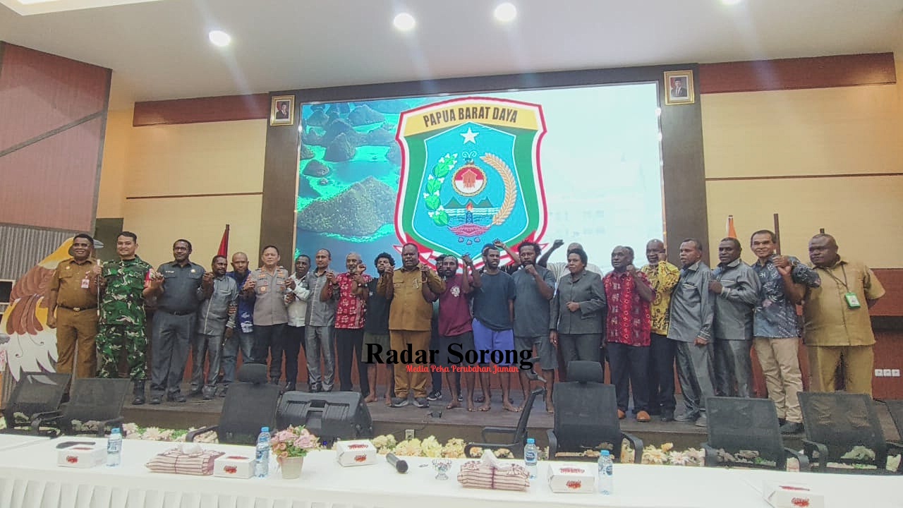 Hal tersebut disampaikan usai rapat yang digelar Gubernur Papua Barat Daya Elisa Kambu didampingi Wakil Gubernur Papua Barat Daya Ahmad Nausrau bersama Unsur Forkopimda se-Papua Barat Daya, MRPBD, DPRP PBD, Tokoh Adat Lintas Suku, Tokoh Agama dan Keluarga Palaku Pengrusakan Rumah Gubernur Papua Barat Daya.